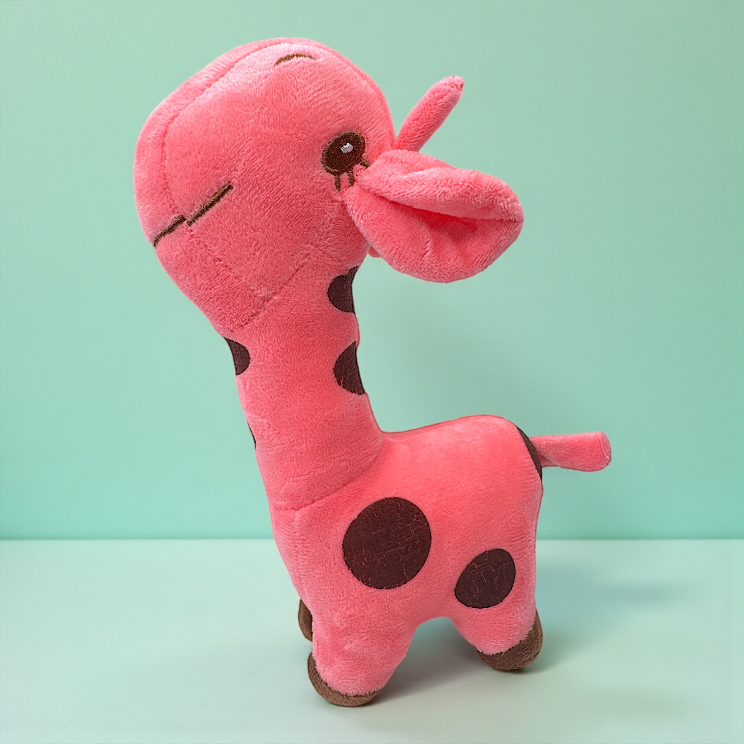 Brinquedo para cachorro em tecido tipo pelúcia, no formato de girafa. Possui apito interno que estimula o pet durante a brincadeira. Macio, leve e fácil de carregar. Ideal para distração e interação com o tutor.