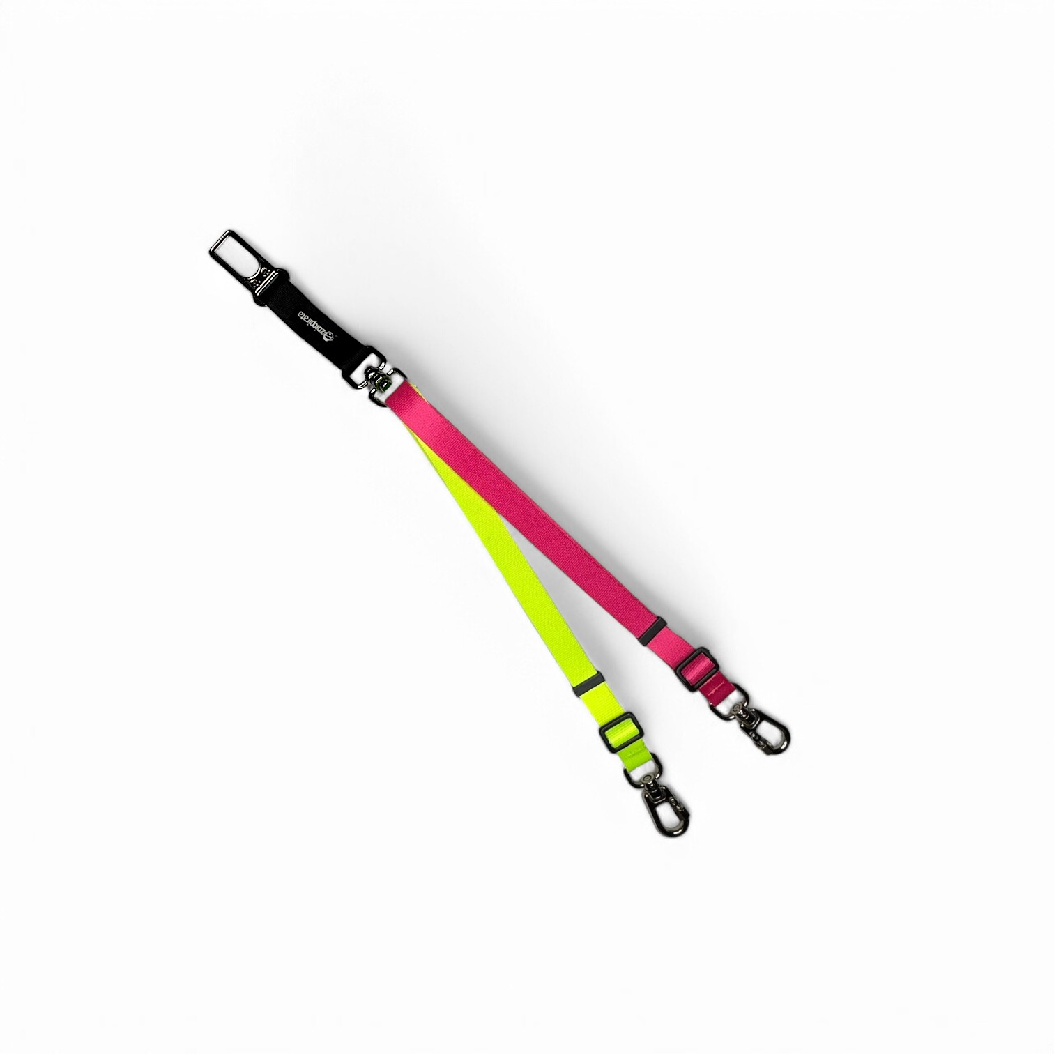 O Cinto de Segurança Duplo foi desenvolvido para quem precisa acomodar dois cães no carro sem ocupar engates extras, garantindo um transporte seguro e confortável para todos.