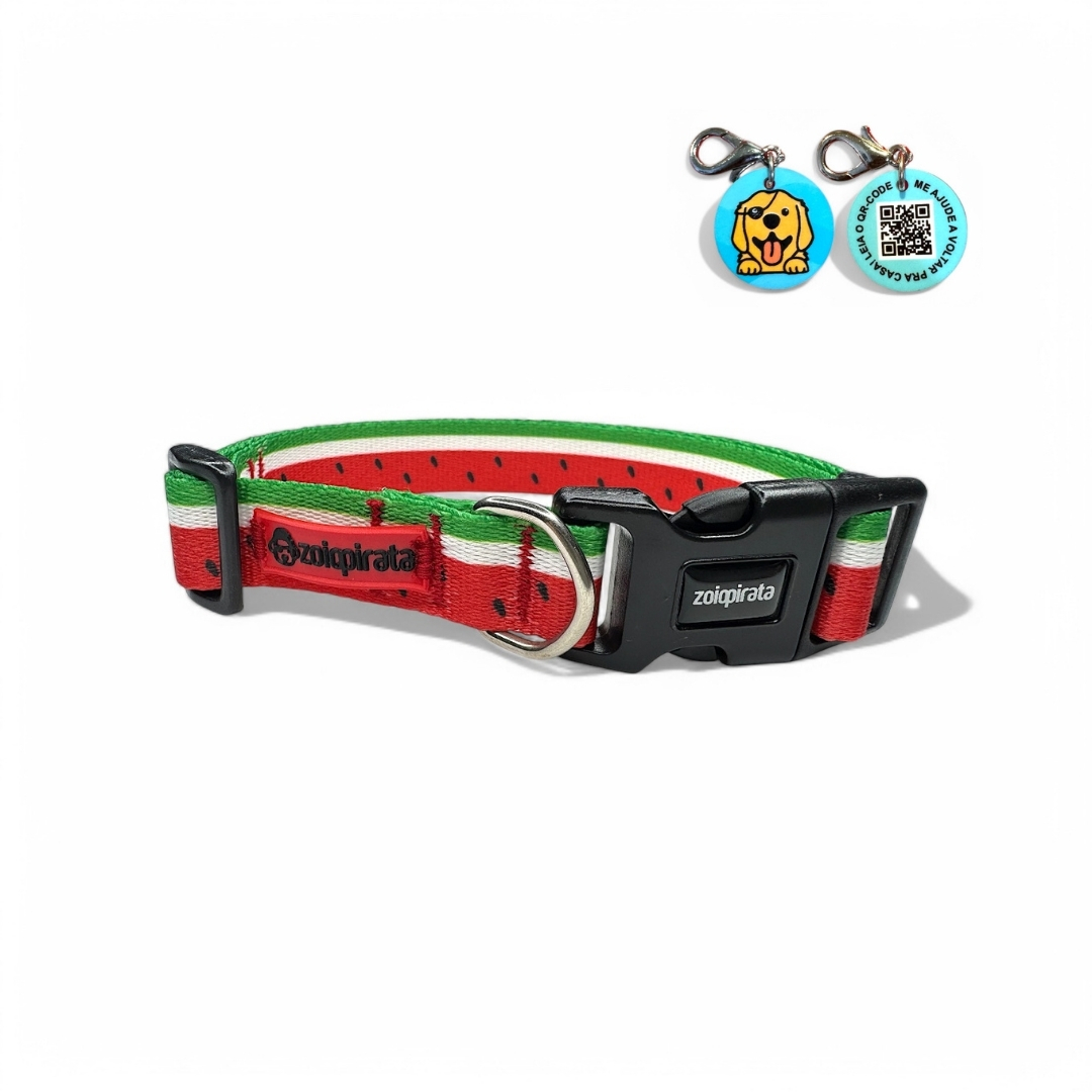 Coleira para cachorros com Tag QR Code Melancia