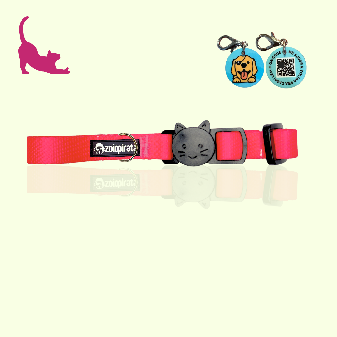Coleira para Gatos com Tag QR Code Breakaway Anti-Enforcamento Neon Rosa