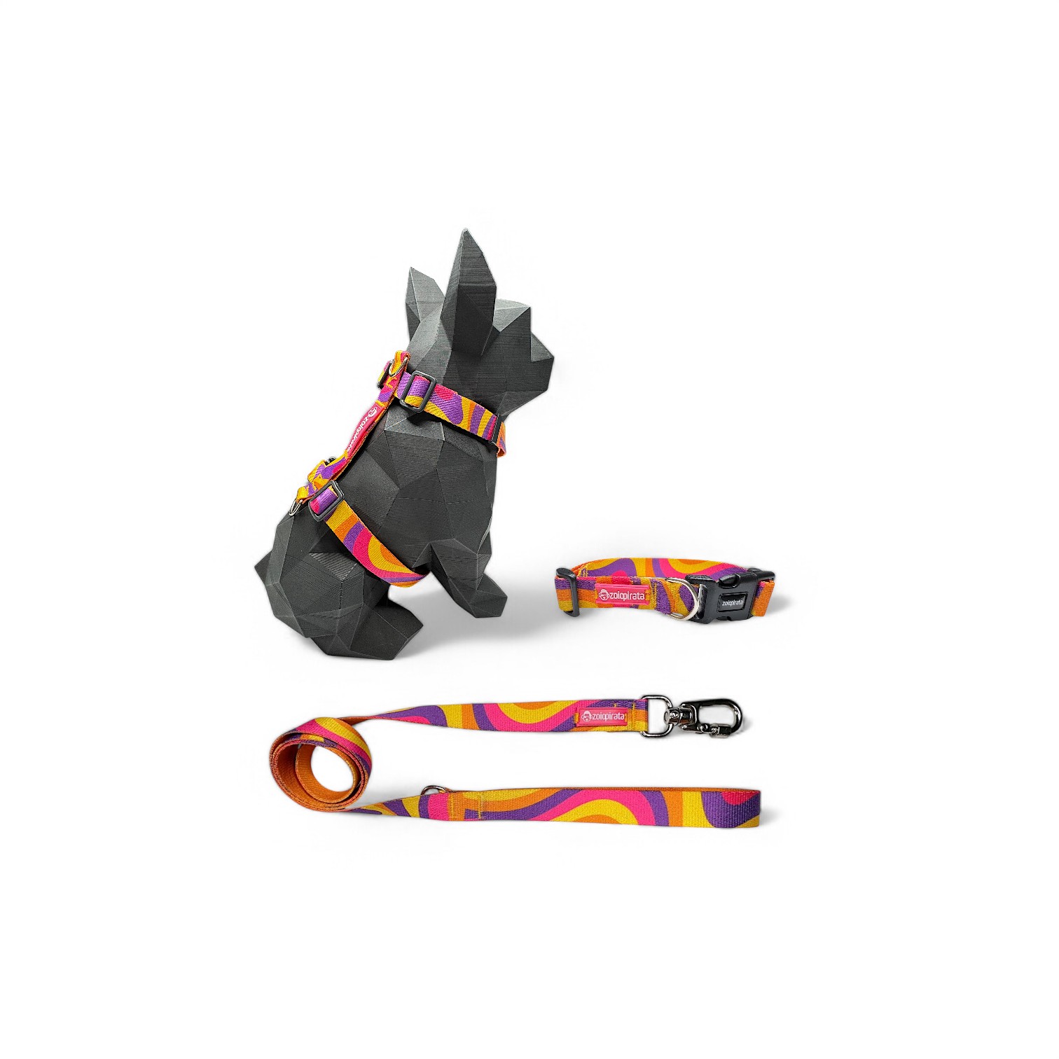 Kit Peitoral H antipuxão para cachorros com Coleira e Guia Wave